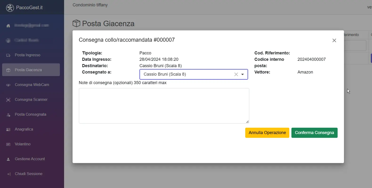 PaccoGest offre un design intuitivo per una facile gestione della corrispondenza.